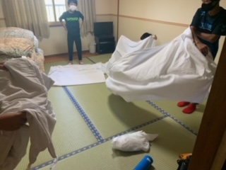 来た時よりも美しくなるよう、協力しながら掃除をしています。