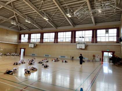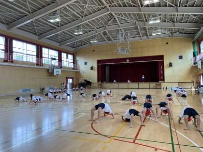 他にも、うつぶせになって両足をつかみ、できるだけ高く引っ張り上げて、カメのようにゆらゆらしたり、ロンドン橋の音楽に合わせてブリッジをしたりしています。