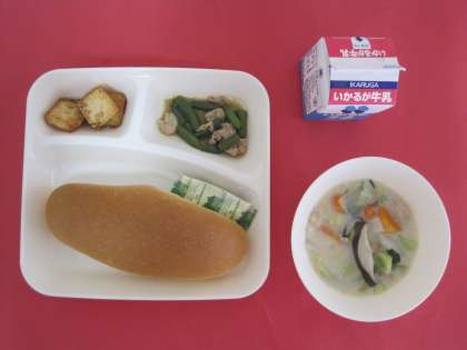 鶏肉、はくさい、たまねぎ、チンゲンサイ、にんじん、生しいたけを使ったクリーム煮です。