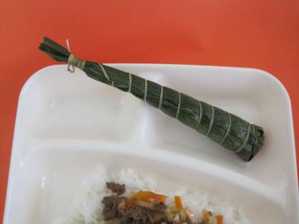 ちまきは、大阪市独自で作ってもらっているもので、学校で蒸しています。