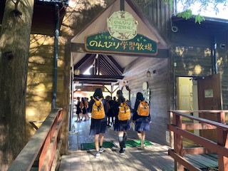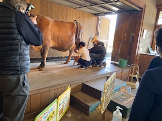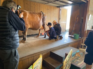 乳搾り体験中です。