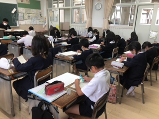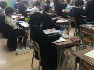 3年生は算数で円の学習をしています。コンパスを使って円をかくことを学んだので、図工の授業でその学びを活かし、コンパスで模様を描き、色をつけていっています。