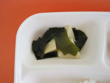 野菜たっぷりのみそ汁と生わかめを使ったわかたけ煮です。