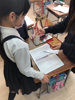 3年生は算数で「重さをくらべる方法を考えよう」を学習しています。