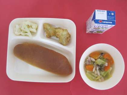 鶏肉、てぼ豆、キャベツ、たまねぎ、にんじん、しめじを使った洋風煮と季節のカリフラワーを使ったサラダです。