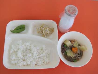 蒸したもやしをゆずの果汁を加えた甘酢で和えました。