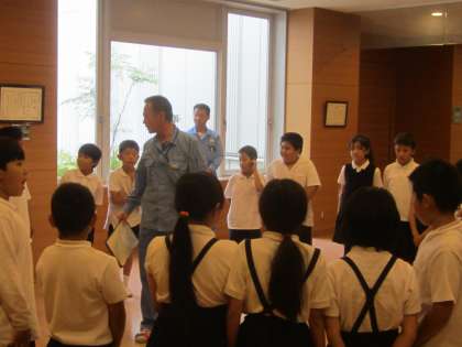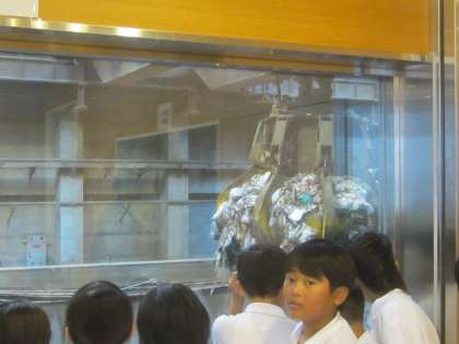 工場では、係の方が丁寧に説明してくださいました。子どもたちは大きなクレーンでごみを混ぜたり、ごみを運んでいる様子をとても真剣に見ていました。
