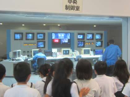 9日(火)社会見学で平野焼却工場へ行きました。喜連瓜破駅から三十分ほど歩いて大和川を渡ると、平野焼却工場に着きます。雨が降っていたので歩いていくのは大変でしたが、みんな頑張って歩いていました。
