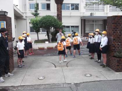 代表委員会の子どもたちが正門前に立ち、呼びかけをしています。明るい元気なあいさつの声が響きわたっています。