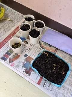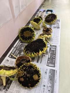 育てていた向日葵の種の収穫をしました。元気よく大きな向日葵がたくさん咲いたので、とてつもない数の種が取れました。