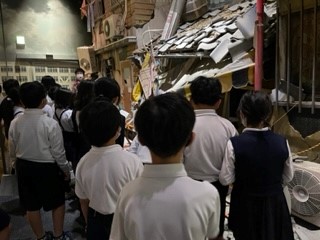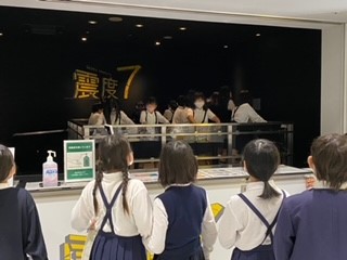 阿倍野防災センターでは、シアター映像や災害発生直後の街並みを再現したところを歩き、災害の恐ろしさ体感しました。