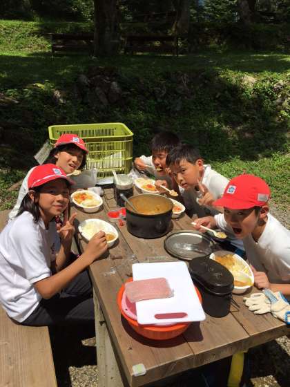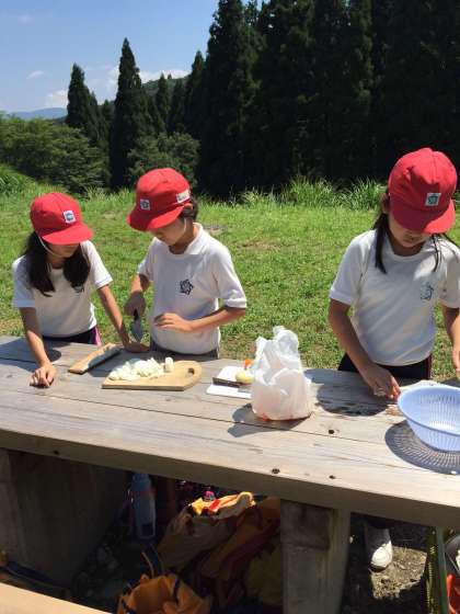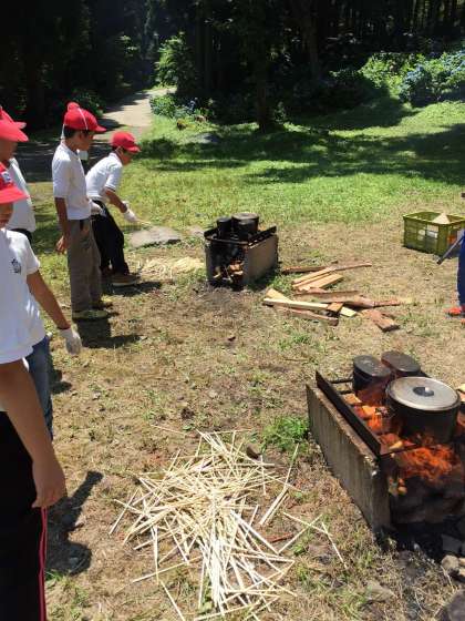 ○ 空の青色と、地面の緑色と、炎の赤色と、みんなの笑顔の