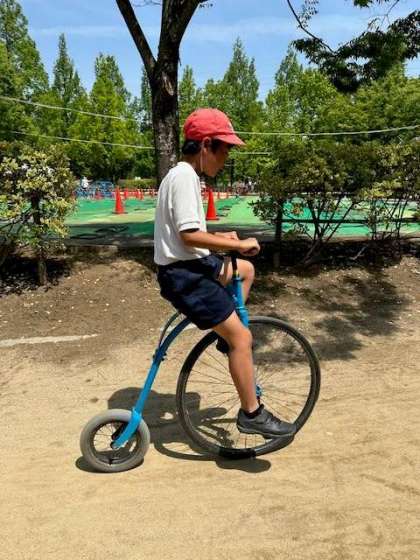 大仙公園では、自転車体験と芝生広場で遊びました。