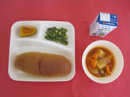 鶏肉、じゃがいも、たまねぎ、にんじん、グリンピースを使ったケチャップ煮です。