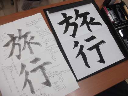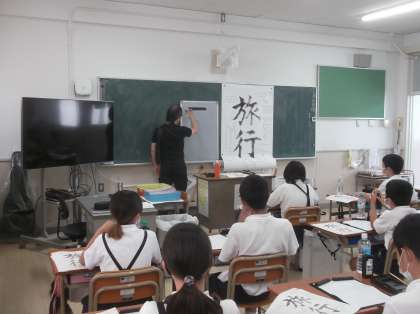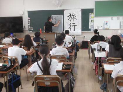 6月16日(金)に書道の先生が来てくださり、6年生に「旅行」の書き方を教えていただきました。筆の持ち方や動かし方、筆を持つときの角度などについて、一つ一つの筆の運び方を細かく丁寧に教えていただきました。子どもたちはとても集中し、いただいたアドバイスをもとに、お手本通りの字が書けるまで何度も何度も「旅行」の字の練習に取り組んでいました。1時間の学習の中で学んだことを習得し、少しずつ上達していくことができました。