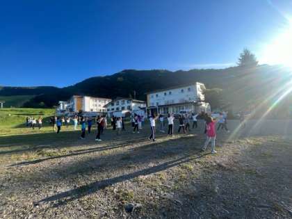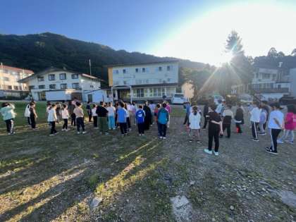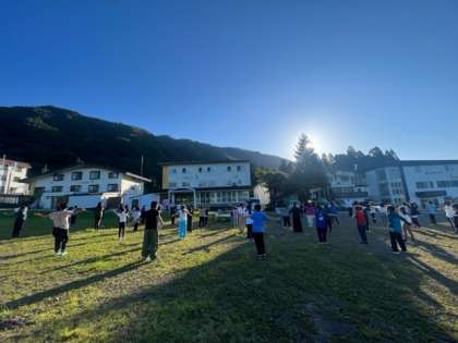 朝起きて身支度をし、宿舎でラジオ体操をしました。