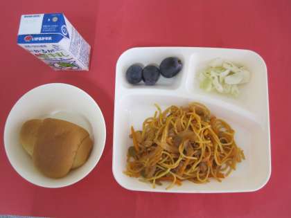 豚肉、ウインナー、スパゲッティ、たまねぎ、にんじん、ピーマン、マッシュルームを使った、児童に好評なイタリアンスパゲッティです。