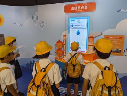 科学技術館では班で行動し、ゲームなどを通して楽しみながら科学や環境問題を学ぶことができました。靭公園では、おうちの人が作ってくれたお弁当を食べた後、おにごっこや、だるまさんが転んだなどをして遊びました。バラ園も近くにあり、綺麗な花も見ることができました。