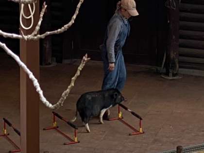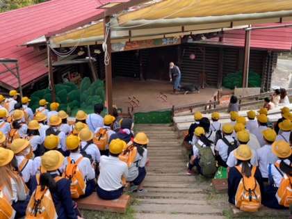 お昼のあとは、全員で豚のショーを見ました。ハードルを上手にジャンプしていて、とても可愛かったです。
