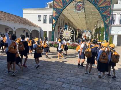 入園しました。班ごとに園内をまわります。