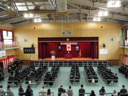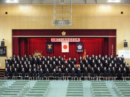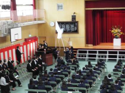 式典の中で、創立50周年記念事業実行会より寄贈いただいた「校歌銘板」を披露しました。今後、学校行事、式典等で活用させていただきます。