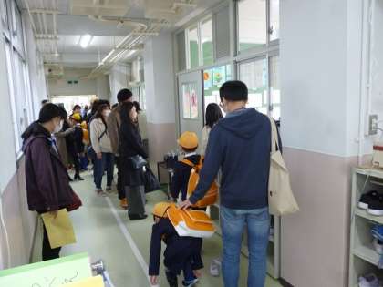 学習参観に引き続いて、引き渡し訓練がありました。