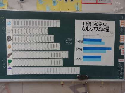 カルシウムの働きや、カルシウムを多く含んでいる食べ物など、子どもたちにとって、初めて知ったことがたくさんありました。