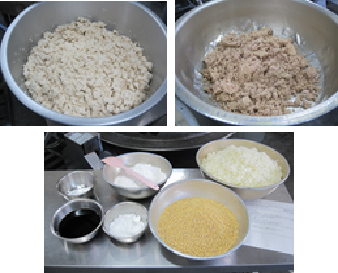 材料と調味料を混ぜ合わせ、ミニバットに入れ、焼き物機で230度、30分間焼きます。