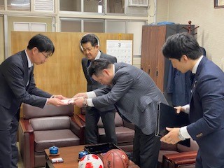 京都銀行様の「京銀SDGs私募債『未来にエール〜次世代を担うこどもたちへ〜』」事業により、丸全ゴム株式会社様より、本校の子ども達のためにと、バスケットボール13個とサッカーボール13個をご寄贈いただきました。本日、校長室に関係者の皆様がお越しくださり、その贈呈式を行いました。これから、しっかり使わせていただき、子ども達の体力アップに取り組みたいと思います。ありがとうございました!