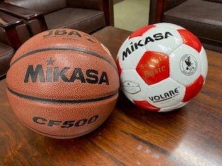 バスケットボールとサッカーボールをご寄贈いただきました。