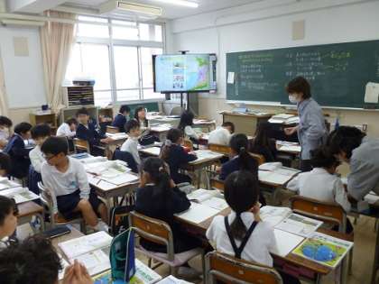 社会科の学習。大阪の地形、町の様子を学習しています。