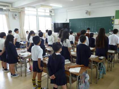 音楽の学習。発声練習をした後、「さくら さくら」を歌いました。