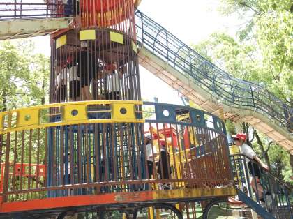 子どもたちは午前中はドッジボールや大繩などを、午後からは遊具で楽しそうに遊んでいました。