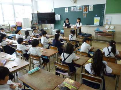 ハンカチ、はなかみ、つめや手洗いのチェックをして、忘れ物をしないよう、しっかり手洗いをするように呼びかけています。