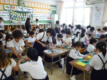 6年生と1年生の交流授業、1時間目のタブレットの学習に続いて、2時間目は図工の学習をしました。