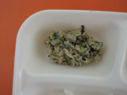 鶏挽肉、とうふ、コーンとたまごとを混ぜ合わせて焼いた千草焼きです。