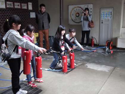 消火体験・煙体験・搬送体験・災害時の非常食体験・消防自動車の見学などをしました。