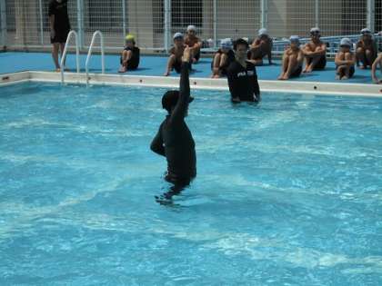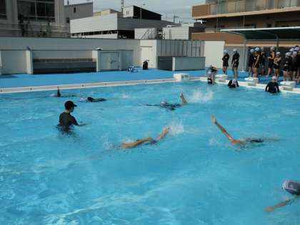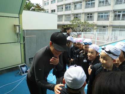 息の継ぎ方、手の動き、足の使い方などステップをふみ、細かく指導していただきました。千葉さんの具体的な指導と励ましで、子ども達は意欲的に練習に励んでいました。どんどん上達し、泳力を伸ばし、自信がついたようです。今日の成果を確認し、次の学習につなげようと、プールの学習を楽しみにしています。