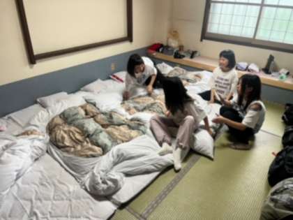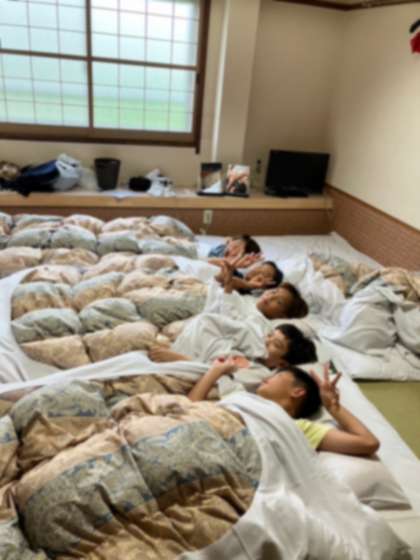各部屋ごとにお風呂に入り、お布団を敷いています。
