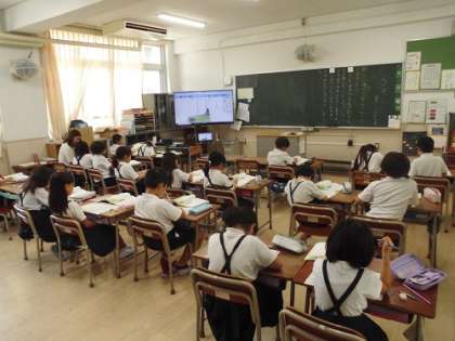 国語の学習。「ニャーゴ」の学習です。想像をふくらませて物語の楽しさを味わっています。