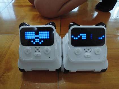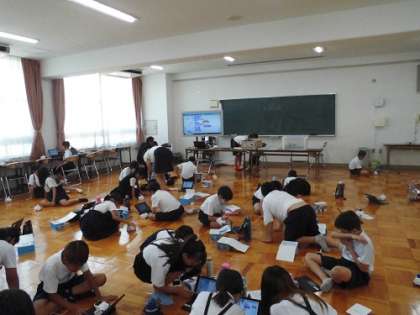 ロボットの動きだけでなく、ロボットの表情や音声もプログラムすることが出来ます。プログラムした動きを確かめながら、プログラムを修正したり、友だちと動きを比べたりしていました。