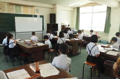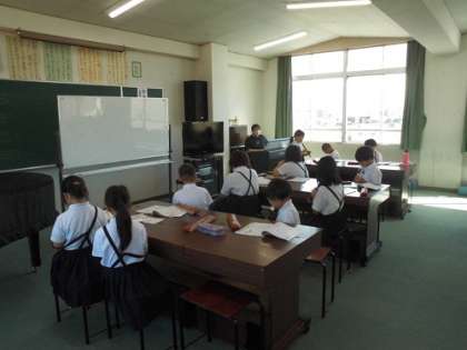 音楽の学習。リコーダーの学習。リコーダーで「ソ」・「ラ」・「シ」の音がしっかり出せるように練習しています。