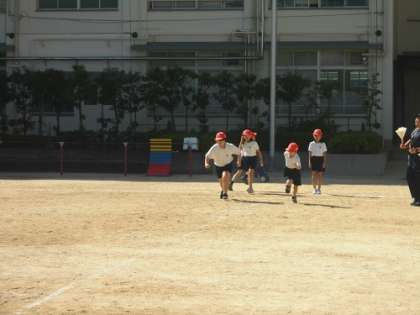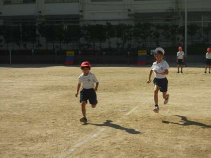 体育の学習です。運動会に向けて50メートル走のタイムを計りました。運動会に向けての取り組みが始まっています。
