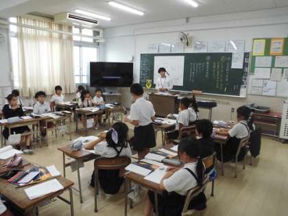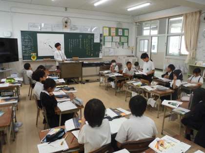 国語科の「サーカスのライオン」の学習です。中心人物について考えたことを文章にまとめ発表しています。