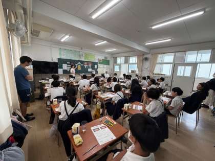 実際に自分の歯を染色する体験や歯周病予防のお話をしていただきました。