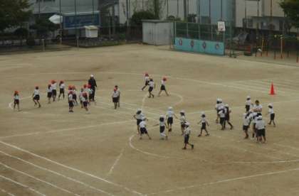 運動会に向けて、団体競技、団体演技の練習に励んでいます。運動会を楽しみに頑張っています。