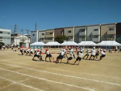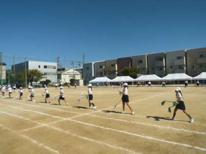 団体演技では、運動会で使うバトンを使って踊っていました。団体競技の棒引きの練習もしました。軽快なステップやダンス、棒引きの素早く力強い動き、いろいろな種目に取り組んでいます。