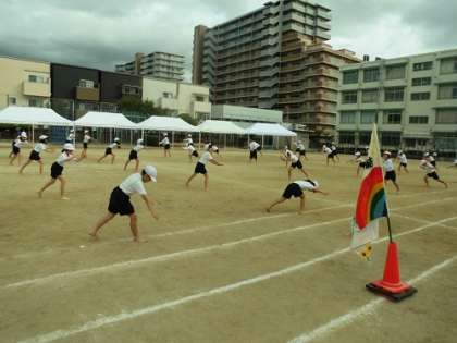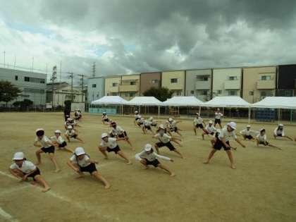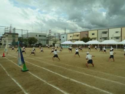 運動会の団体演技ソーラン節の練習です。運動会を盛り上げる学級旗も出来上がり、大きな掛け声もそろい、練習に熱が入っています。