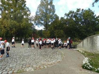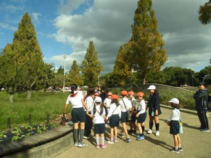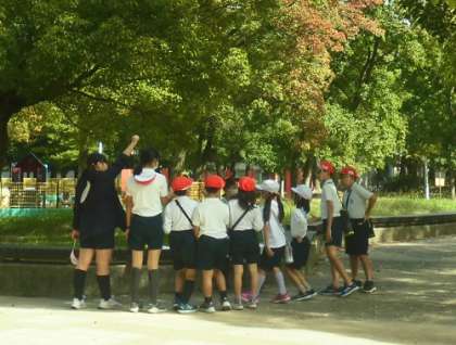 ふれあい班で協力してゲームに挑戦。みんなで楽しくポイントを回り、ゲームをしました。どの班もみんなで協力していました。
