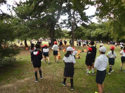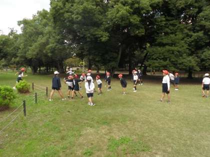 お弁当の後、みんな遊びをしました。「だるまさんがころんだ」、「鬼ごっこ」など楽しい時間を過ごしました。違う学年の友だちと遊ぶのも楽しかったようです。